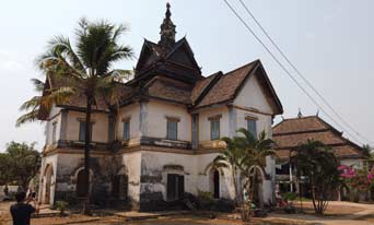 Vat Muang Kang is the oldest active temple active in Champasak, that dates back to the 19th century. Its architecture is quite particular and complex, with Burmese, Cambodian, French, Lao, and Vietnamese influences.