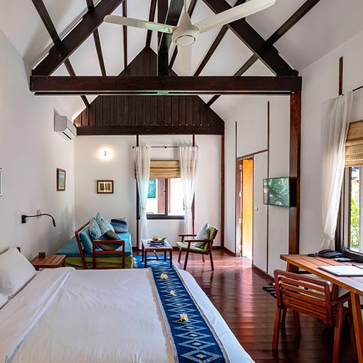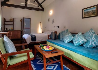 Our four Deluxe garden view rooms are individual bungalows with a large lounge and sleeping area plus a bright bathroom.