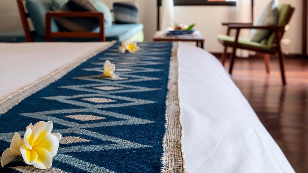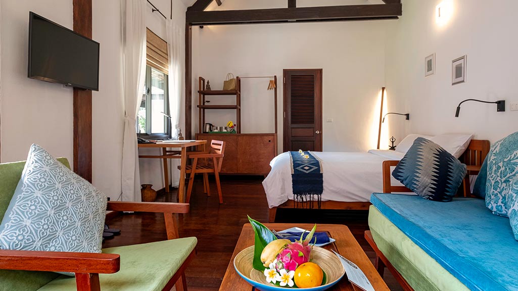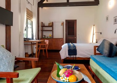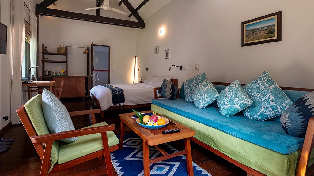 Our luxurious suites on the Mekong side of our hotel are elegantly decorated with tiles that give them a soft bluish atmosphere. They each have a lounge, a street side terrace…