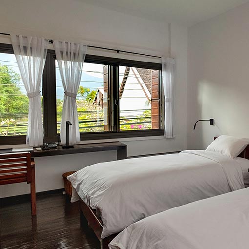 The doubles offer a unique view of the Mekong while the Twins offer views of the picturesque street of Champasak.